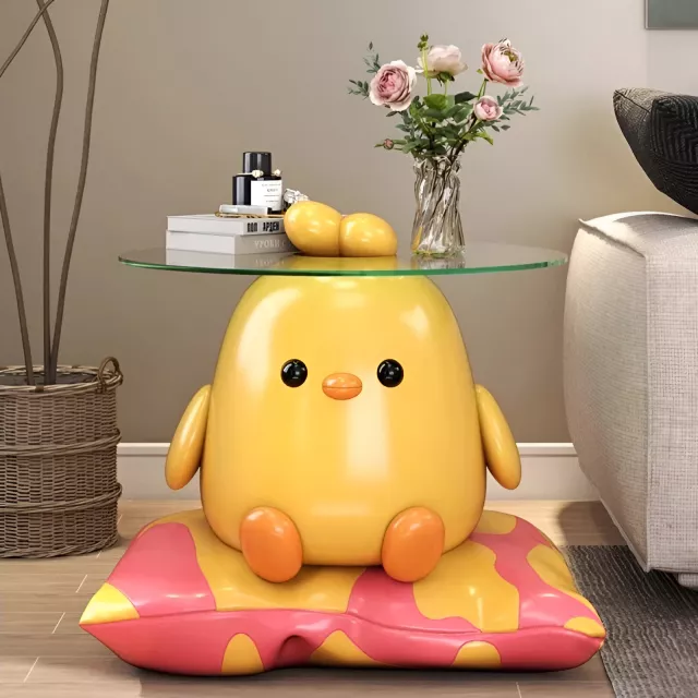 Perfect for both adults and children who appreciate design with character, this table blends functionality and aesthetics beautifully. The round tempered glass top provides a sleek, transparent surface that enhances light and space in your room, making it feel brighter and more open. Whether placed beside your sofa, in a cozy reading nook, or as a decorative accent in your home, this table is designed to elevate your interior effortlessly.